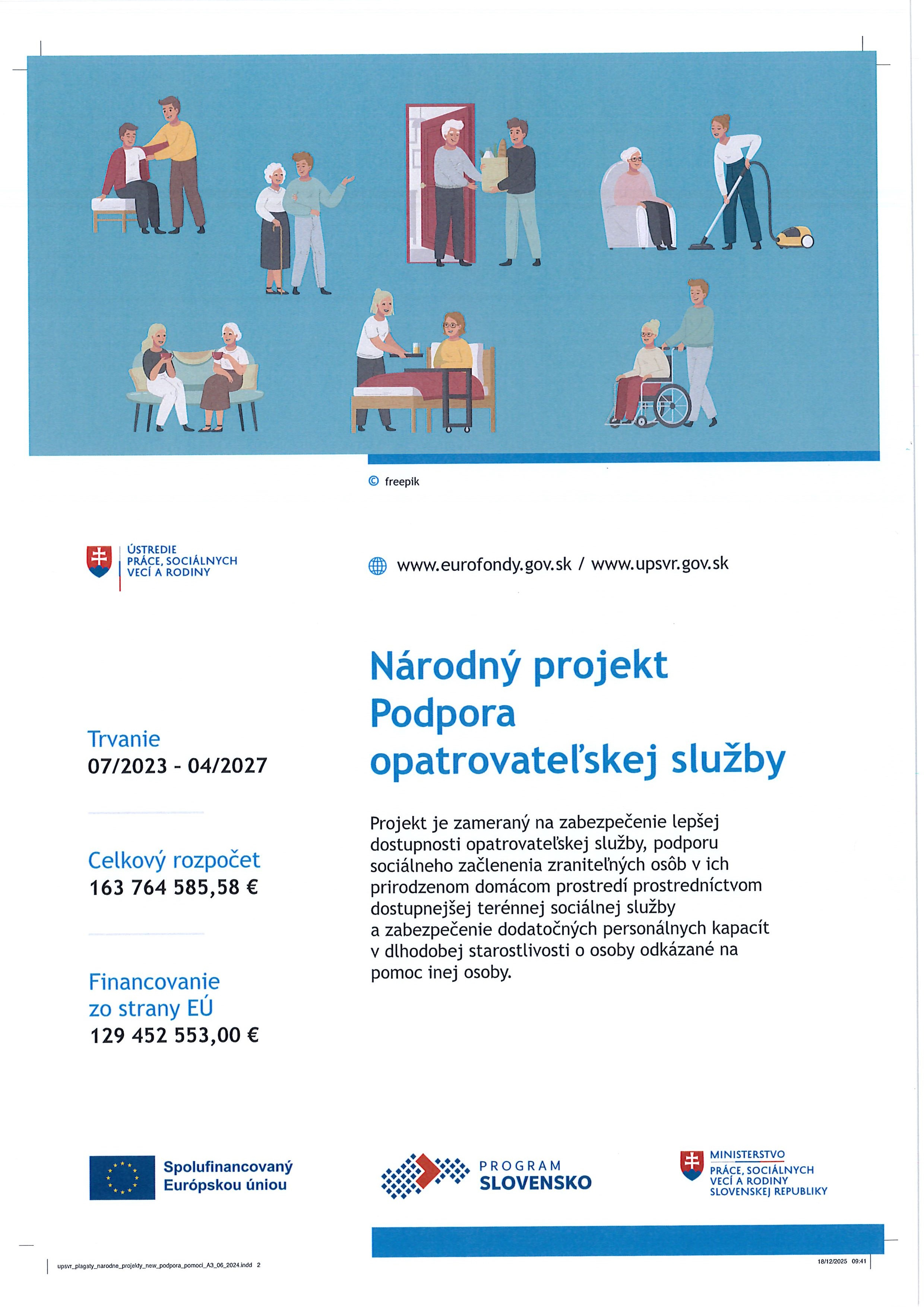 Národný projekt Podpora opatrovateľskej služby 07/2023 - 04/2027